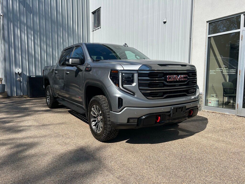 10-Speed Automatic, 4WD, Jet Black With Kalahari Accents Leather, 10-Way Power Driver Seat Adjuster w/Lumbar, 10-Way Power Passenger Seat Adjuster w/Lumbar, 120-Volt Bed Mounted Power Outlet, 120-Volt Instrument Panel Power Outlet, 170 Amp Alternator, 18" x 8.5" Machined Aluminum Wheels, 2 Charge/Data USB Ports Inside Center Console, 2 Type-C Charge-Only Rear USB Ports, 2 USB Ports, 220 Amp Alternator, 3.23 Rear Axle Ratio, 4-Wheel Disc Brakes, 7 Speakers, ABS brakes, Adaptive Cruise Control, Air Conditioning, Alloy wheels, AM/FM radio, Apple CarPlay/Android Auto, AT4 Preferred Package, AT4 Premium Package, Auto High-beam Headlights, Auto-dimming door mirrors, Auto-dimming Rear-View mirror, Auto-Locking Rear Differential, Automatic Emergency Braking, Automatic temperature control, Auxiliary External Transmission Oil Cooler, Bed View Camera, Black Chrome Header & Grille Insert Bars, Block heater, Brake assist, Buckle to Drive, Bumpers: body-color, Cat-Back Performance Exhaust (LPO), Color-Keyed Carpeting Floor Covering, Compass, Deep-Tinted Glass, Delay-off headlights, Driver door bin, Driver Memory, Driver vanity mirror, Dual front impact airbags, Dual front side impact airbags, Electric Rear-Window Defogger, Electrical Steering Column Lock, Electronic Stability Control, Emergency communication system: OnStar and GMC connected services capable, Engine Block Heater, External Engine Oil Cooling, Floor-Mounted Center Console, Following Distance Indicator, Forward Collision Alert, Front anti-roll bar, Front Bucket Seats, Front Center Armrest, Front dual zone A/C, Front fog lights, Front License Plate Kit, Front Pedestrian Braking, Front Prem Floor Liners w/Removable Carpet Insert, Front Rainsensing Wipers, Front reading lights, Front wheel independent suspension, Fully automatic headlights, GMC Connected Access Capable, HD Surround Vision, Heated 2nd Row Outboard Seats, Heated door mirrors, Heated Driver & Front Outboard Passenger Seating, Heated front seats, Heated rear seats, Heated steering wheel, Heavy-Duty Air Filter, Hill Descent Control, Hitch Guidance, Hitch Guidance w/Hitch View, Illuminated entry, In-Vehicle Trailering App, Integrated Trailer Brake Controller, IntelliBeam Automatic High Beam On/Off, Keyless Open & Start, Lane Keep Assist w/Lane Departure Warning, LED Cargo Area Lighting, Low tire pressure warning, Memory seat, Multicolor 15" Diagonal Head-Up Display, Navigation System, Not Equipped w/Steering Column Lock, Occupant sensing airbag, Off-Road High Clearance Step (LPO), Off-Road Suspension, OnStar & GMC Connected Services Capable, Outside temperature display, Overhead airbag, Overhead console, Panic alarm, Passenger door bin, Passenger vanity mirror, Perforated Front Leather Seat Trim, Perimeter Lighting, Power Door Locks, Power door mirrors, Power driver seat, Power Front Passenger Windows w/Express Up/Down, Power Front Windows w/Driver Express Up/Down, Power passenger seat, Power Rake & Telescoping Steering Column, Power Rear Windows w/Express Down, Power Sliding Rear Window w/Rear Defogger, Power steering, Power Sunroof, Power windows, Preferred Equipment Group 4SB, Premium audio system: GMC Infotainment System, Premium Bose 7-Speaker Sound System, Push Button Start, Radio data system, Radio: Premium GMC Infotainment Audio System, Rain sensing wipers, Rear Camera Mirror, Rear Cross Traffic Braking, Rear Pedestrian Detection, Rear Prem Floor Liners w/Removable Carpet Insert, Rear reading lights, Rear seat center armrest, Rear step bumper, Rear Wheelhouse Liners, Rear window defroster, Red Recovery Hooks, Remote keyless entry, Remote Vehicle Starter System, Safety Alert Seat, Security system, SiriusXM w/360L, Speed control, Speed-sensing steering, Split folding rear seat, Spray-On Pickup Bed Liner w/AT4 Logo, Steering Wheel Audio Controls, Steering wheel mounted audio controls, Tachometer, Technology Package
